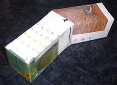 次に示すのが、HIRAX一型分光器である。ハンディ・超軽量の優れものだ。テープとハサミと去年のカレンダーを駆使し、フリーハンドで作成した、製作時間20分の大作である。どうも私の仕事はテープとハサミを駆使することが多い。それは、ハードでもソフトでも、どちらでも同じことである。出来の悪いノッポさんである。