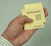両端を動かすだけで、パタパタと自然に開いたり折り畳まれていくようすがよく判ると思う。![]() | 実際の大きさは掌にすっぽり隠れるサイズ。 裏表紙は表紙を裏返したデザイン。それは、考えたり思ったりしたことにはきっと表も裏もあるだろう、という気持ちの現れなのである。 |