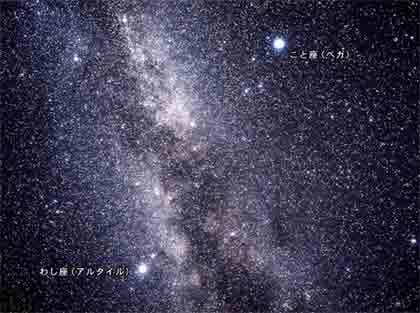 今日は七月七日、七夕だ。その夜、天の川の両岸で光る織女星と彦星が一年に一度だけ逢う。織女星は琴座(Lyra)のα星ベガ(Vega)で、彦星は鷲座(Aquila)のα星アルタイル(Altair)である。